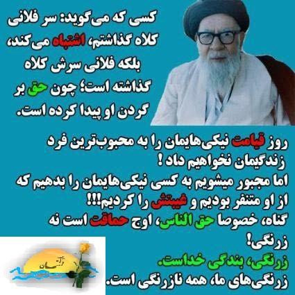 16 - با مردم به خوشی و نیکی رفتار کنید همان طوری که قرآن دستور داده است و به ملامت مردم ترتیب اثر ندهید.